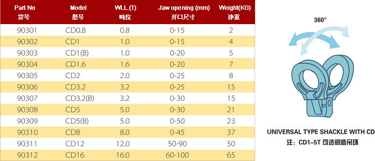 .配有鉸接吊環 (CD型)