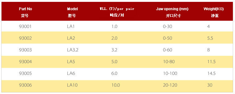 .額定載荷是指吊鉗成對使用、吊點夾具為60度時允許起吊的最大重量,吊裝作業中兩只或4只配套成組使用